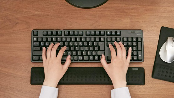 これによって大きく変わるのは手の角度が水平に近くなるので、指で押す力を抑えつつタイピングできるので、疲れにくくなります。