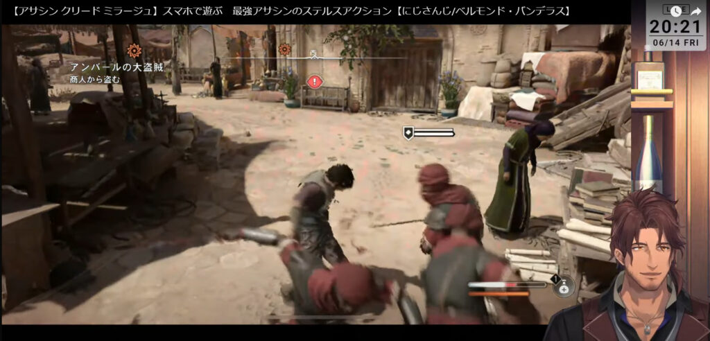 配信中にはアサシンクリードシリーズ恒例の「スリ」にも挑戦。あえなく失敗し、多数の衛兵に追いかけられる場面も。「すいません!偉大なアサシンなんです。助けてください!」と言いながら、衛兵を振り切ろうとする姿にコメント欄も大盛り上がりでした!