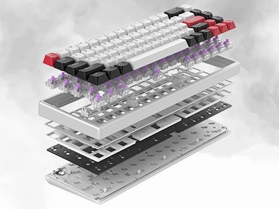 「Arbiter polar65」にはプレートとPCBの間にシリコンのダンパーフォームを搭載しています。このシリコンが一層挟まることにより静音効果を高めるだけでなく、コトコトとした心地よい打鍵音、さらにキー自体の揺れを最低限に抑え、潤滑済みのスイッチによる安定感のある打鍵感があります。
