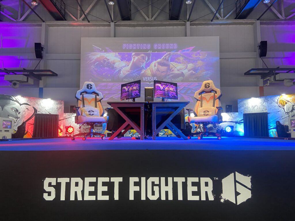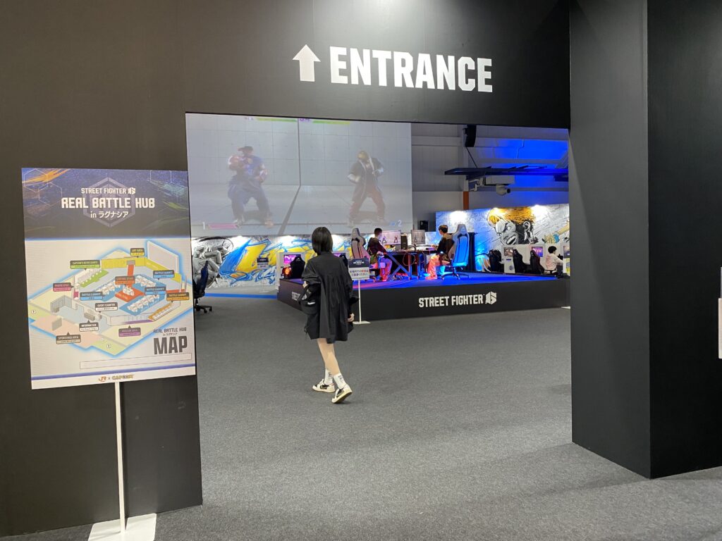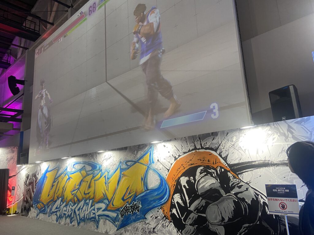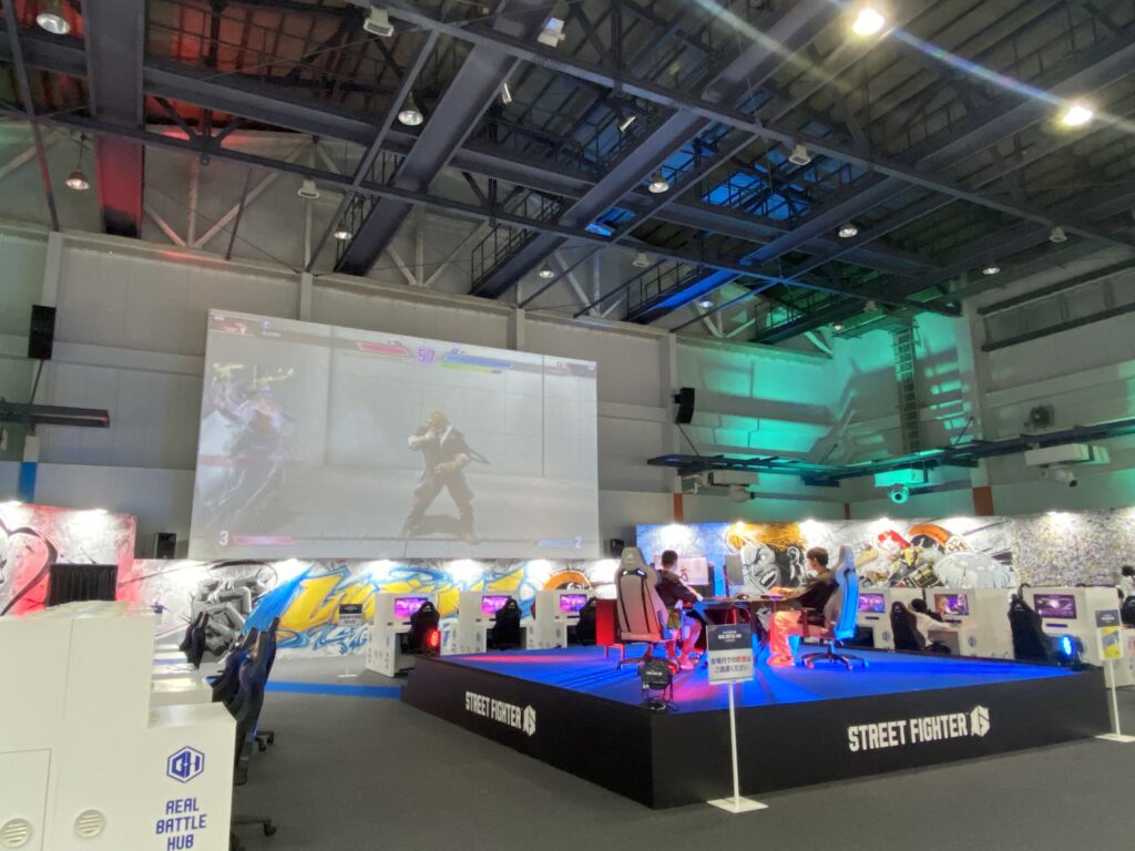 大迫力のサウンドとSF6の特徴でもある綺麗なグラフィックに圧倒され、入場時に映っていた試合に茫然と見入ってしまいました。