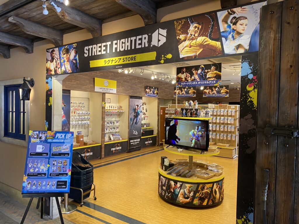 入り口を抜けるとすぐに見えるのは、東京でも見たことない規模のSF6専門グッズショップが!