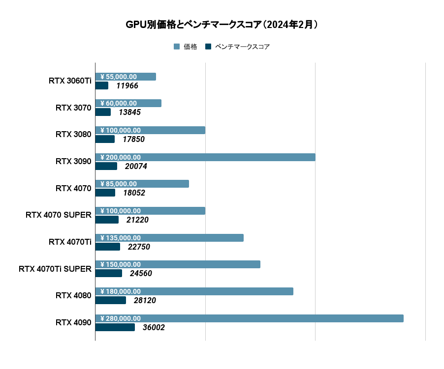 RTX 3090の半額で同等以上の性能を手に入れられると思えば、かなりコスパに優れていると言えるでしょう。