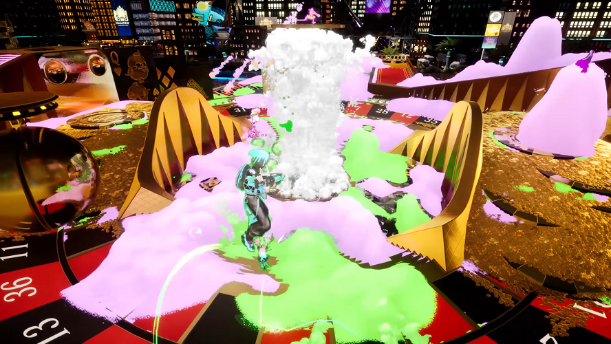 トレーラームービーからわかることは、敵を倒しつつより自軍の色にステージを広く染め上げたチームの勝利となるゲーム性。