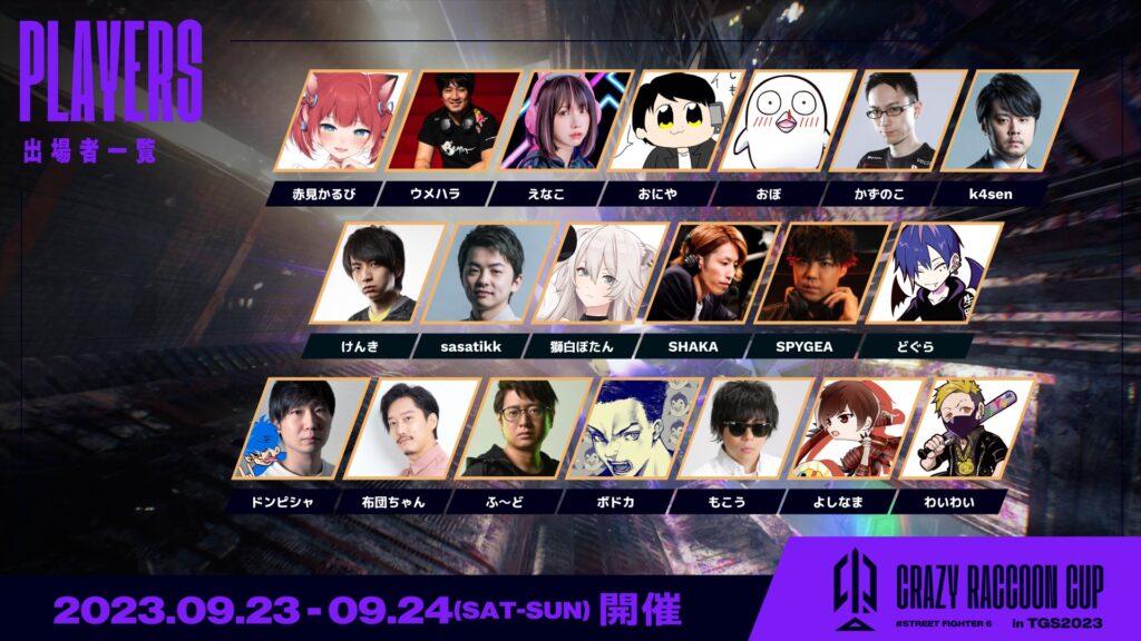 「TGS 2023」のe-sports部門で一番の目玉イベントである『ストリートファイター6』のCRCUPは、大手ストリーマー、現役プロ選手、Crazy Raccoonのストリーマーがチームを組み争う大会です。
