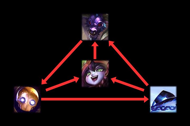 細かい要素で有利不利が覆るチャンピオンの組み合わせはたくさんありますが、おおまかにこんな感じで『Leagueof Legends』には有利不利が成り立つよ、ということを解説しました。