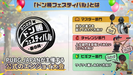 ドン勝フェスティバルはPUBG JAPANが主催する公式のエンジョイ大会です。