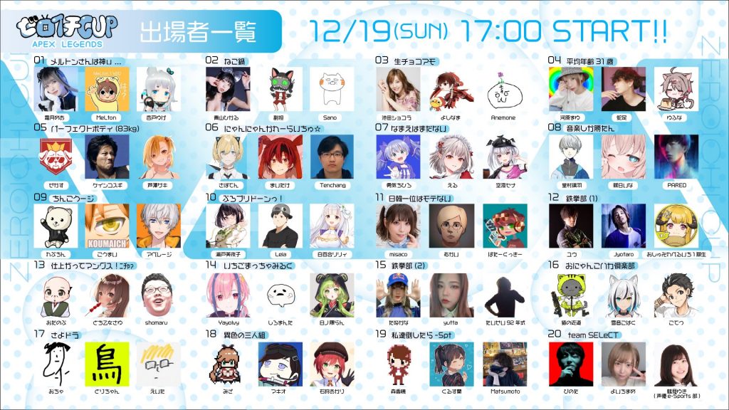 ゼロイチCUPとは、プロゲーマーやストリーマーはもちろんながら、Vtuberから芸能人まで、様々な分野のインフルエンサーが集うゲームイベントです。